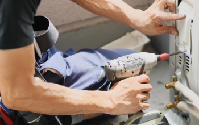 お問い合わせ後、専門スタッフが現場を訪問し、エアコンの設置状況を確認します。